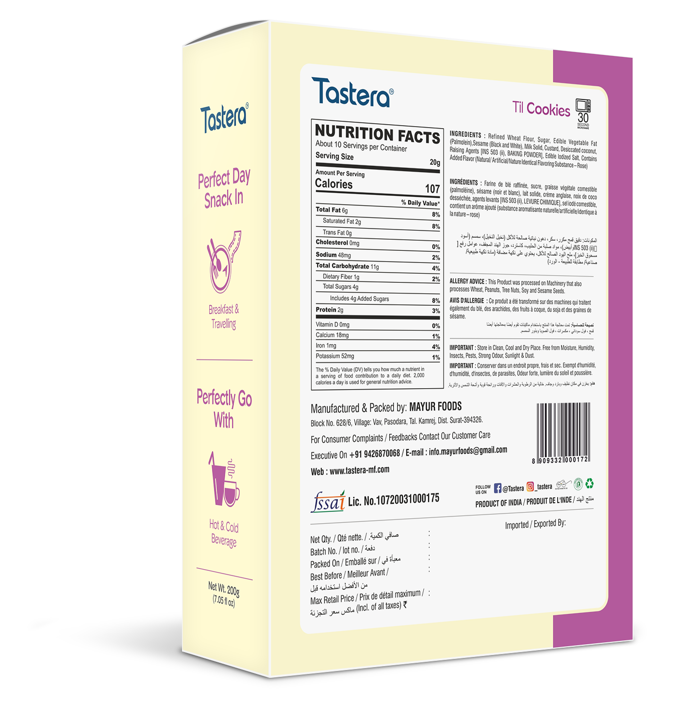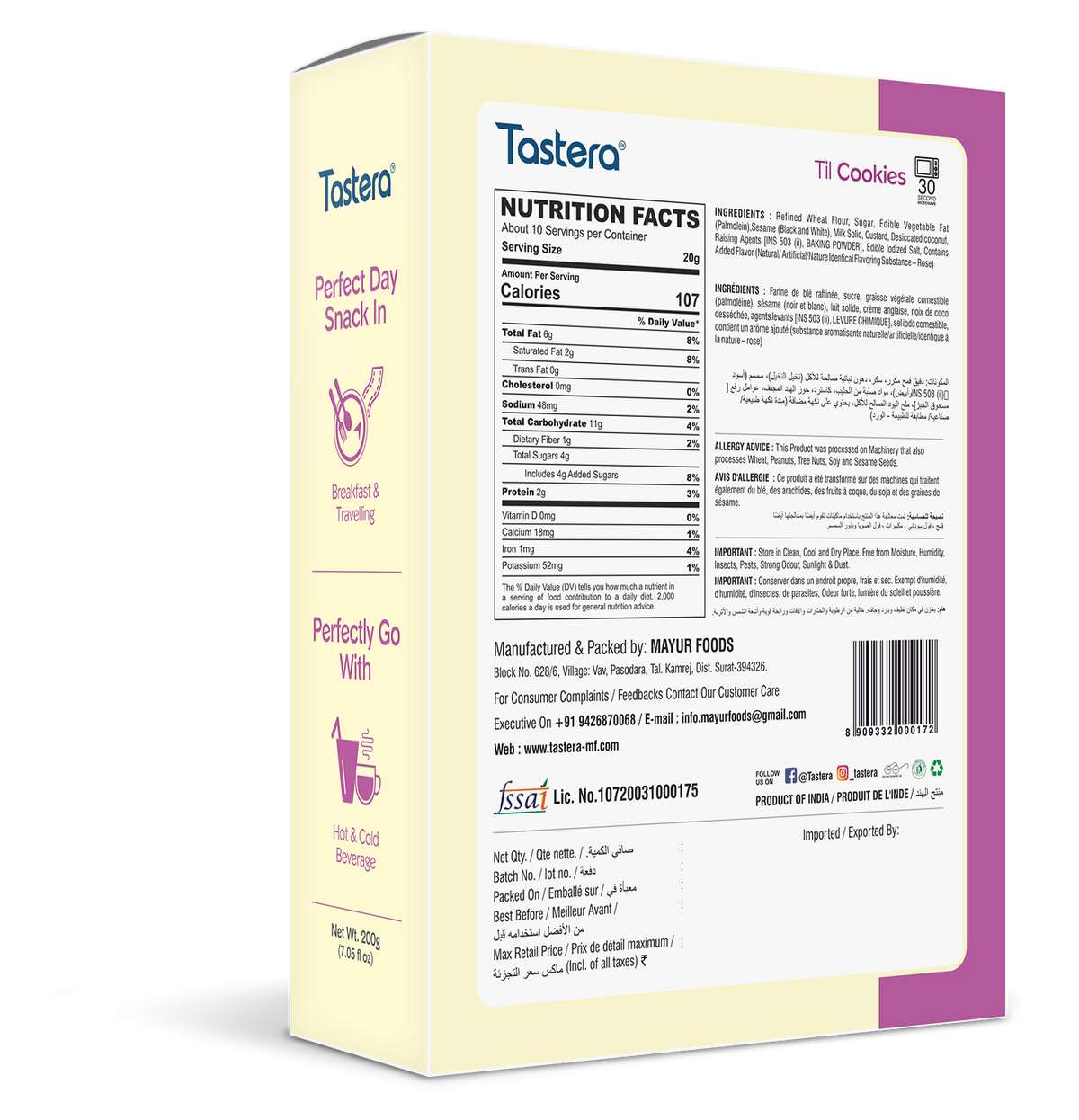 Ideal for guilt-free snacking, Til Cookies are a wholesome choice for those who enjoy traditional flavors with a modern twist. Whether with tea or as an anytime treat, they deliver comfort and crunch in every bite.